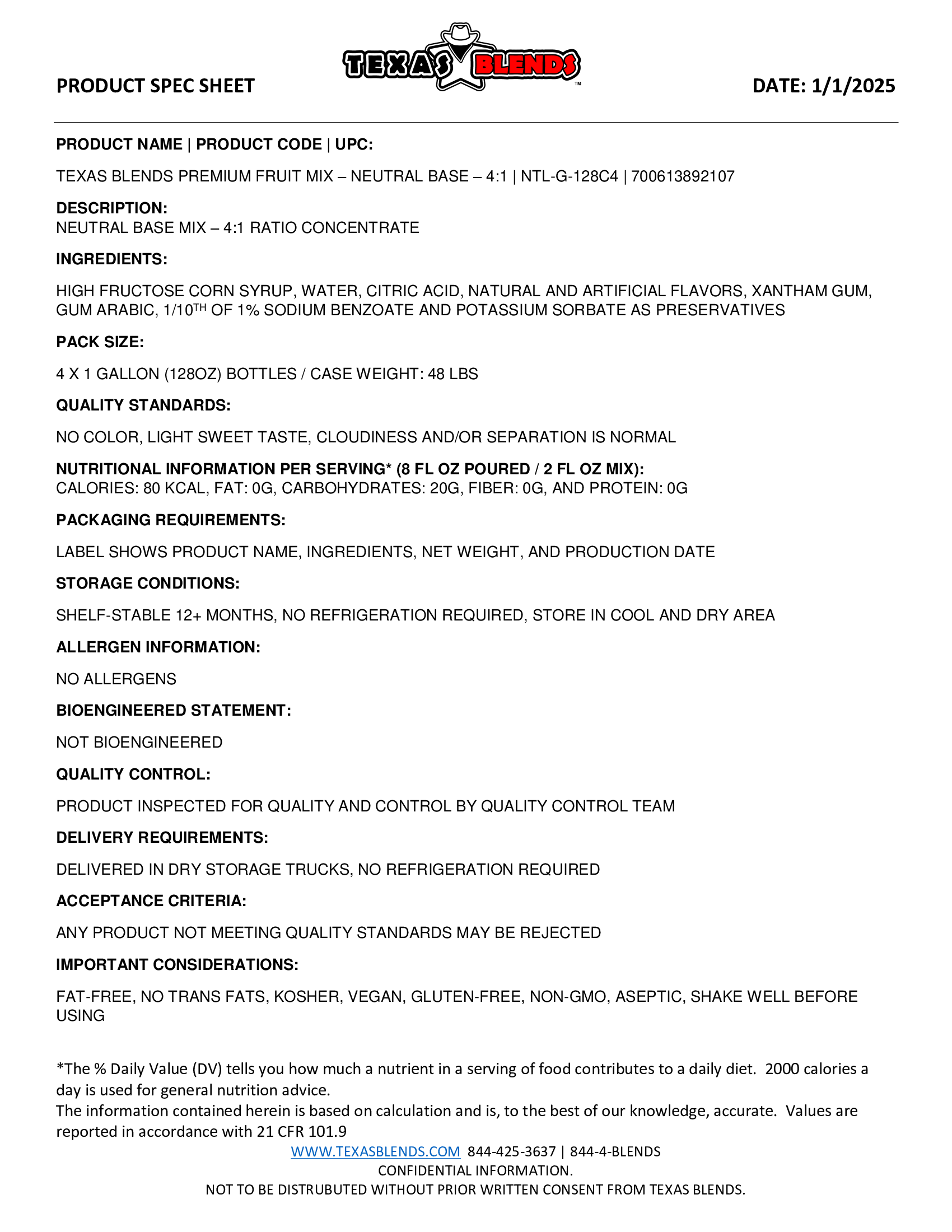 4 pack case of our 1 Gal mixes -- available for Neutral and Texas Sweet Tea!